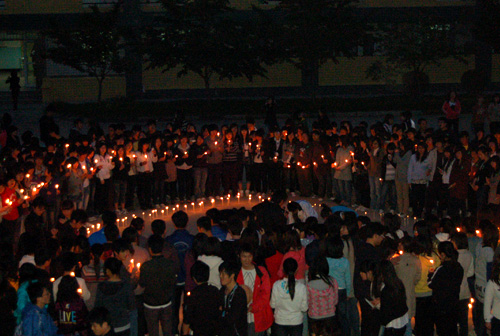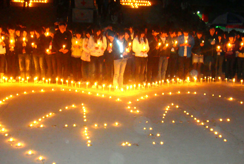 4月22日晚7时49分,培华红十字会在大学生活动中心前广场举行了“为玉树‘烛’福”的主题活动,我校红十字会会员和学生1000余人自发前来参加祈福活动,为青海玉树“4?14”地震遇难同胞致哀,为幸存者祈福。