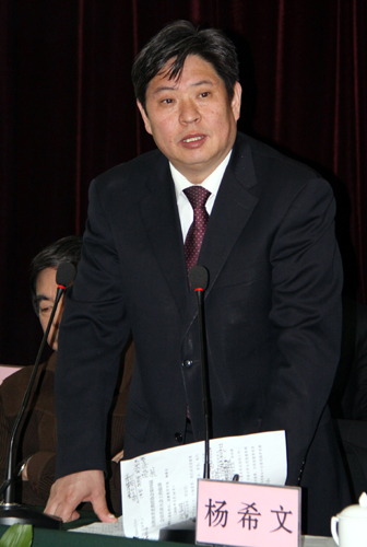 省委教育工委副书记、陕西省教育厅厅长杨希文代表省委、省教育厅对陕西省老教授协会第四届会员代表大会的召开表示热烈祝贺,向各位老教授致以美好的祝福,向受表彰的单位和个人表示崇高的敬意。杨厅长充分肯定全省老教授协会员,心系全省工作大局,发挥经验优势和专业特长,活跃在科研、教育、文化、卫生和工农业生产等各条战线,为全省经济社会又好又快发展作出了积极贡献。杨希文厅长高度评价姜波理事长以实际的行动表达对老教授、老专家们的尊重,他指出,姜波理事长用实际行动支持老教授协会的发展,为全社会营造尊重知识、尊重人才的良好氛围起到推动作用,也为我们树立了学习的榜样。