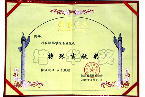 陕西省老教授协会副会长刘续德宣读了《关于表彰了2005—2009年期间老教授协会工作的先进集体、先进个人、突出贡献者和先进单位的决定》和关于本次奖项以“培华奖”来命名的情况说明。省领导和我校理事长姜波博士为获奖的单位和个人颁奖。为了感谢西安培华学院姜波理事长为老教授协会所作的突出贡献,张勃兴书记代表协会为其颁发了“老教授协会特殊贡献奖”。