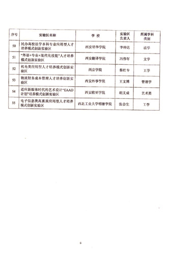 根据省教育厅下发的《关于公布2009年省级人才培养模式创新实验区的通知》(陕教高[2009]48号文件),我校申报的“民办高校法学本科专业应用型人才培养模式创新实验区”被批准为省级人才培养模式创新实验区,这是我校申请获批的第一个省级人才培养模式创新实验区。实验区负责人:李仲达教授。
