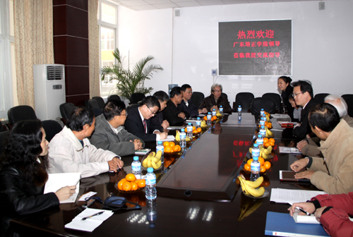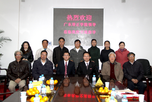 11月16日下午,广东培正学院副院长孙广勇一行9人来我校考察交流工作。我校理事长姜波、副院长杨定君以及相关部门领导接待了代表团,并在校会议室展开了亲切座谈。