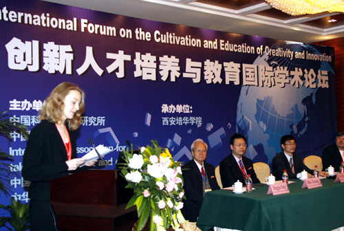 为更好的配合党和国家当前培养人才的需要,落实科学发展观,2009年10月30日至11月2日由中国科学院心理研究所、中国心理学会、IRATDE、中国关心下一代工作委员会教育发展中心、中华教育家协会主办,西安培华学院承办的“创新人才培养与教育国际学术论坛”在西安隆重召开。中国科学院心理研究所发展与教育心理研究中心主任施建农,中国科学院国际学术交流中心副主任陈思亮,我校理事长、院长姜波以及来自美国、加拿大、英国、日本、澳大利亚、德国、新加坡、沙特、香港、澳门和台湾的创造力和超常教育研究领域的众多专家学者参加了会议。