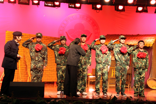 和《摆摊》一样反映当代大学生生活的还有现代小品《一块表》和《面试》。《面试》主要讲述了一位应届毕业生到一家广告公司应聘的经历,同时遭受两位有矛盾考官的区别对待,从欢喜到失落再到激动,感情的跌宕起伏牵动观众的心。其中艾美丽的饰演者关雪峰,反串女生角色,瞬时让观众眼前一亮,其姿态妖娆,语言幽默,时常引得观众捧腹大笑,使现场气氛不断高涨。现代小品《藏在箱底的秘密》讲述了一对解放初期的婆孙俩为了参军问题而争执不休,最终在叔叔的劝说下,孙子小军才穿上了箱底的那套父亲的军装,带上大红花,应征入伍。演绎者感情真挚,朴实的语言表达不朴实的情感“有国才有家”,使现场爆发出一阵又一阵热烈的掌声。