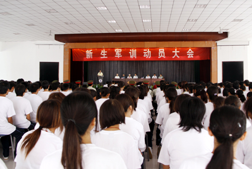 8月18日上午10时,09届第一批新生军训动员大会在我校长安校区大学生活动中心举行。党委书记王斗虎、副院长陈明华、杨定君、段茂贤、王根性,院长助理姜朗,校总会计师陆忠明等校领导及职业教育学院、各处室负责人以及军训团全体教官、指导员和我校第一批参训学生出席了大会。