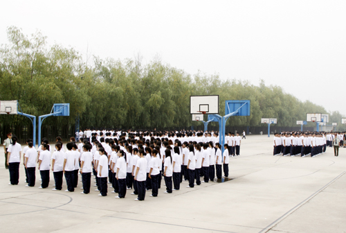 在激昂的培华校歌声中,大会圆满结束。随后,在军训团全体教官的带领下,参训学生来到我校操场,开始了他们的军训生活。