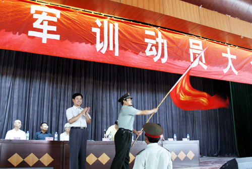 大会由段茂贤副院长主持,在庄严嘹亮的国歌声中拉开了帷幕。首先由陈明华副院长宣读了组建军训团的命令,王斗虎书记向军训团授旗,随后军训团团长程晓光宣布了军训计划。