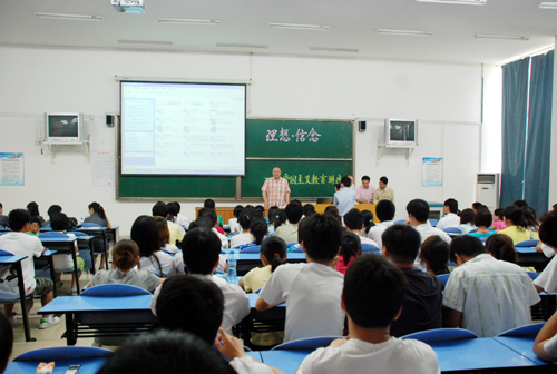 为了深入贯彻落实科学发展观,加强爱国主义教育,弘扬红色文化,培育民族精神。5月8日下午,我校特邀西安八路军办事处纪念馆(以下简称八办纪念馆)宣讲团一行10人来到长安校区为学生作主题为“理想·信念”的报告。院办副主任秦泉安,文法学校副院长车宝仁,团委副书记赵君慧,团委宣传部部长王翠等老师与各院系300名师生代表共同聆听了报告会。文法学校副院长车宝仁教授主持报告会。