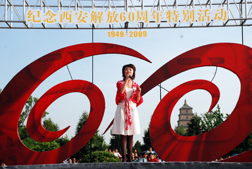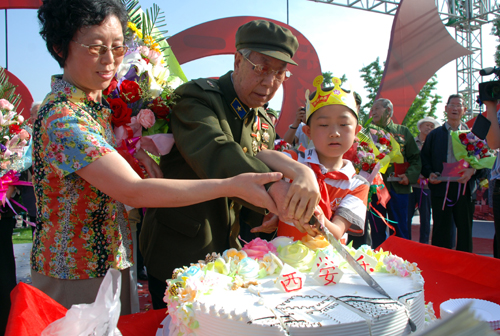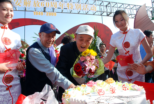 5月20日,是西安解放纪念日,在2009年的今天,我们迎来了她60岁的生日。为了表达对西安的热恋和对英雄的崇高敬意,20日下午16时30分,由省军区政治部、西安市委党史研究室和华商报社联合举办的“庆祝西安解放60周年”大型庆典活动在大雁塔北广场隆重举行。西安市、省军区政治部、市委党史研究室及华商报社部分领导、我校姜波院长以及学院部分领导与众多亲历西安解放的老战士亲临现场,与100余名社区居民、200名中小学师生、60名西安“同生日”的市民“寿星”齐聚在庆典现场为西安庆祝生日。