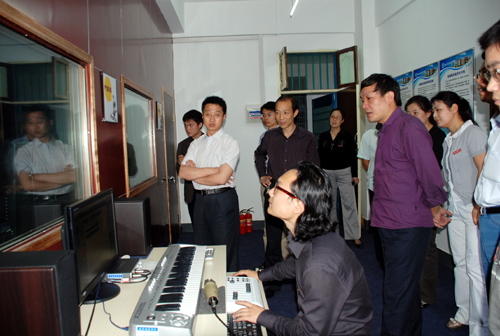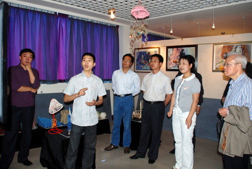 专家组一行首先实地考察了高新校区艺术设计学院,详细查看了05级动画专业学生毕业作品成果。艺术设计学院邵璐副院长和05级动画专业学生宋亮亮同学分别为专家组成员讲解学生设计成果和毕业作品。专家组成员不时地向学生问及关于创作经过与思路、设计理念、所用设备等方面的问题。学生一一对答。05级动画专业学生创作的三维动画、二维设计、卡通设计、手绘、动漫、动画雕塑等在展览室中向专家一一展示。专家组在观看中连声称赞。专家组还实地查看了动画专业的图书资料室、定格动画实验室、动画配音室、非线性编辑室、动画原画室等实验室,并现场观摩了学生的演示。