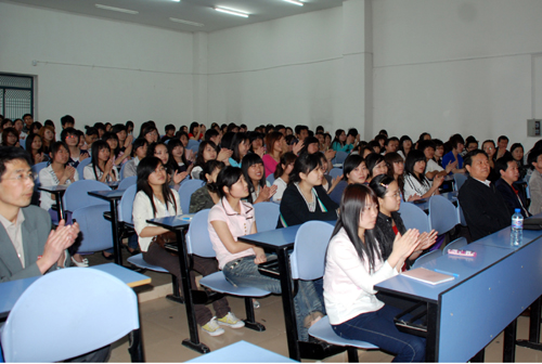 4月16日下午,省作家协会党组书记、常务副主席雷涛,副主席兼《小说评论》主编李国平,创联部副主任许如珍应邀来我校做报告。姜波院长亲切接待了雷涛主席一行,并在报告会前作了热情洋溢的讲话。文法学院中文系300余名学生聆听了报告。
