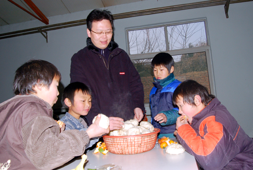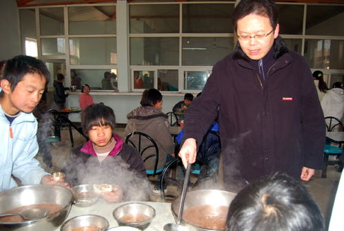 随后,姜院长来到食堂看望正在吃饭的孩子们,姜院长亲自为孩子们分发包子,还为孩子们盛来热腾腾的稀饭,并和孩子们进行倾心的交谈。“你多大了?”“学习好不好啊?”,姜院长十分关心孩子们的学习和生活情况,并鼓励孩子们好好学习,长大以后为社会做贡献。姜院长耐心地倾听儿儿童村严老师的讲解,详细了解儿童村管理中存在的一些困难,当听到儿童村目前急需解决的一些问题时,姜院长表示,将会尽自己所能为孩子们多做一些事,并会号召我校红十字会及学生会多组织一些学生多来关心这些孩子,帮助孩子们健康成长。最后,姜院长表示将会带动身边更多的朋友加入到关爱儿童村孩子们这一活动中来,为孩子们健康快乐的成长提供更多的帮助。