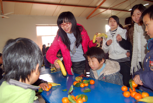 12月31日上午,刚刚在北京荣获“2008年中国最值得人民记忆的十大公益模范人物”的姜波院长,在安排完学校的日常事务后,和我校20多名师生、华商报员工代表,一起前往西安东郊白鹿原上的陕西省回归研究会儿童村,带上猪肉蔬菜水果、牙膏毛巾、食用油、新年挂历等日用品,去看望在那里生活的缺少关爱和亲情的80多名孩子。得知这个消息,倍受感动的西安达博教育、阿斯顿英语学校和来自陕西师范大学、西安外国语大学、长安大学的十几位师生也一同前往。姜院长及热心人士的的这一份关爱,就像冬日里的一缕阳光温暖孩子们的心灵,让孩子们感受到寒冬里的温暖。