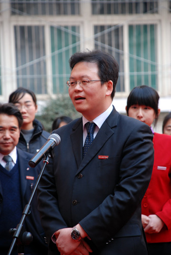 在王书记介绍完到场嘉宾后,院长姜波致欢迎辞。姜院长对邵华将军摄影作品首次走进陕西,走进我校表示祝贺,对毛新宇部长为我校提供大量的珍贵资料表示衷心感谢。他说,希望通过开展邵华将军摄影作品,使同学们更多地了解我国老一辈无产阶级革命对事业的追求,进一步弘扬爱国主义教育和加强革命传统教育,并预祝本次作品展圆满成功。