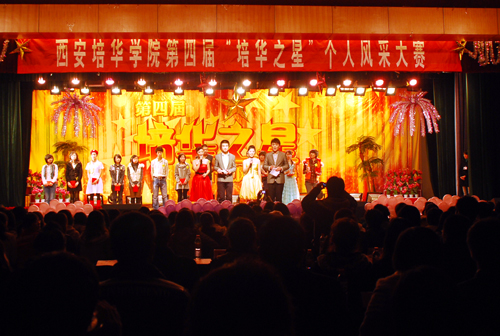 为了丰富校园文化生活,展示培华学子风采,由我校团委主办、学生会协办的第四届“培华之星”个人风采大赛决赛于11月26日晚7点在我校大学生活动中心举行。院长姜波、招办主任姚文静、团委书记赵君慧、院办刘维东老师及团委各位老师到场观看,崔勃、张倩、杨博渊、刘思思四位老师担任本次大赛的评委。