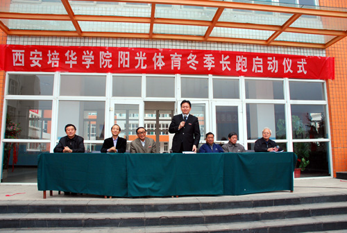 仪式由校运动委员会副主任杨定君副院长主持。校运动委员会主任姜波发表了热情洋溢的讲话。首先,姜院长肯定了开展阳光体育工程的重要意义。他强调阳光体育工程的开展不仅能传播健康的生活理念,而且可以促进全体学生健康水平的提高。同时,他要求我校体育部要将体育教育工作抓紧抓实,做到体育课教学与课外体育活动相结合,通过形式多样的特色体育活动提高学生的身体素质和增强同学们的健身意识。姜院长号召我校全体同学积极参与冬季长跑活动,做到增强体质、快乐学习、健康成长。