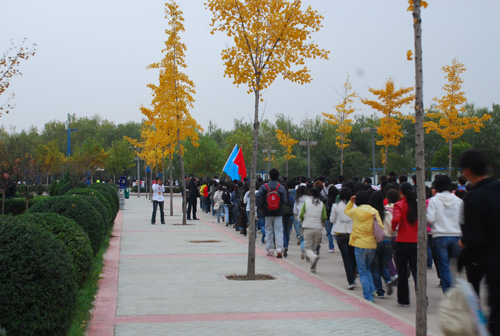 五点十分,随着清脆的信号枪一响,姜院长宣布冬季长跑活动开始。由各院系千余名学生组成的长跑方队,在三名体育部老师的带领下有序的出发,开始了第一轮的千米长跑。