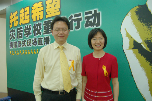 在活动将要结束时,主持人慷慨激昂的说:“节目可以结束,募捐活动可以结束,但爱心的传递不会结束,希望有更多的人加入到“托起希望——灾后学校重建行动”的活动中来。