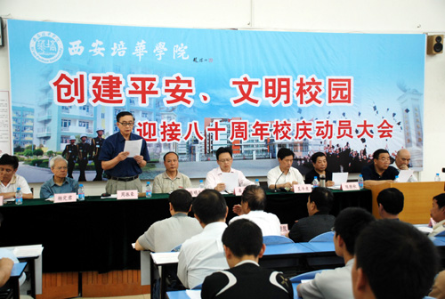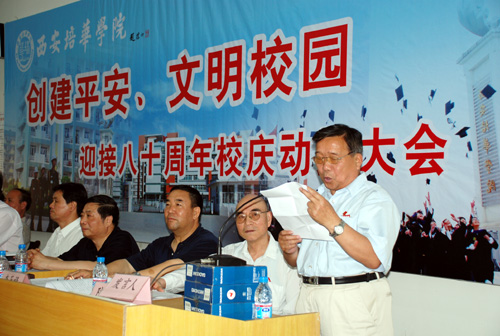 姜院长为大会作动员报告。他说,在全校师生深入学习贯彻党的十七大精神,努力推动学校各项工作又好又快发展,以饱满的工作热情和高昂的精神状态迎接我校建校80周年华诞和迎接北京2008奥运会召开之际,今天我们在这里隆重召开我校创建平安、文明校园、迎接80周年校庆动员大会。正式启动“平安校园”“文明校园”创建工程。这是我校扎实推进和谐校园建设的一件大事。