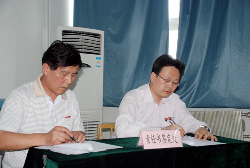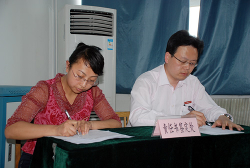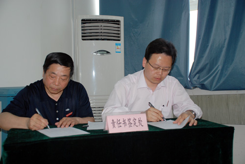 随后,我校主管保卫和总务工作的的李天禄院长和党委王书记分别针对我校创建平安、文明校园”工作做出了详细的部署和更进一步的安排,确定了工作目标和要求。副院长杨定君、周振豪分别宣读了 “安全稳定责任书”和“文明校园活动责任书”。经济管理学院李学智院长、学生处王春来处长和外国语学院学生陈俊晗分别作为院系、处室、学生代表针对我校创建“平安、文明校园”的建设工作做了表态发言,并现场签订责任书。