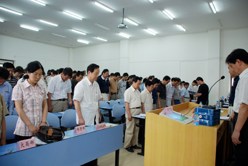 会议由王书记主持,会前全体与会人员起立为在汶川地震中遇难的同胞默哀。