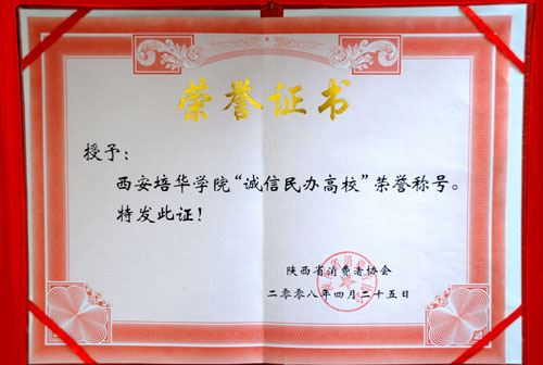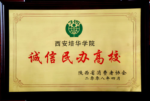 为了贯彻落实党的十七大优先发展教育,建设人力资源强国精神、充分发挥陕西教育强省优势、展示陕西省民办教育成果,围绕中消协2008年“消费与责任”主题,我校参与了陕西省消费者协会关于开展评选“陕西诚信民办教育机构”活动,现评选结果揭晓,我校被评为“陕西诚信民办高校”。