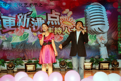 5月8日晚7点,由我校共青团委员会主办,校广播站承办的第五届“更新沸点”主持人大赛总决赛在我校大学生活动中心举行。文法学院副院长车宝仁教授、团委副书记赵君慧老师、网络中心主任蒯国胜老师、团委组织部部长张晓妮老师等领导观看了此次比赛,担任此次比赛的评委由我校新闻系播音与主持专业的刘晨晨、屈阳、吕伟、王媛、余文等老师组成。