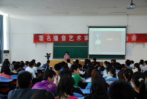 5月9日下午2点,当代著名播音与主持艺术家陈爱美女士莅临我校作报告,并受聘为我校文法学院客座教授。院长姜波,副院长、文法学院院长陈明华,文法学院副院长车宝仁,教学科科长张力学及300多名师生代表在J102阶梯教室聆听了报告会。