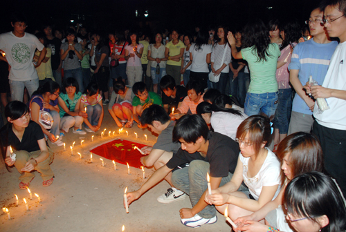 姜院长激动地说,一支支蜡烛,一点点烛光,就是一颗颗真诚的心。他劝慰在场的来自灾区的同学,激励大家努力学习,用实际行动支持灾区重建。