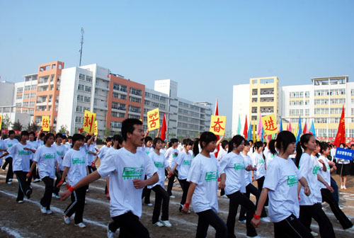 彩旗队、裁判员、运动员们在雄壮的运动进行曲中展现着蓬勃的朝气,一句“更快、更高、更强”的奥运格言响彻整个培华校园,激荡着广大同学的心。各院系健美操参赛队随着欢快的节奏跳起舞动,跟着音乐变换不同的队形,充分表现出我校学生的顽强斗志、对奥运的向往和热情。