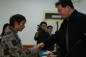 为了推动我院linux技术的应用与普及,提高学生linux技术技能,经“北京中科红旗”和“西安培华学院”授权许可,我院计算机系大三本科班的105名同学经过一学期的学习和考试,有102名同学获得“中科红旗linux结业证书和RAP工程师证书。”12月25日下午,姜波副院长、杨定君副院长、邵兴运副院长、教务处翟志诚处长、计算机系席德生主任为考试合格的同学颁发证书,并表示热烈的祝贺。