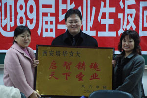 在西安新城区人民法院工作的任朝霞校友激动的说:20年前,是母校教给我们知识和做人的道理,十几年来,我们一直默默关注着母校的发展,为母校的每一步发展欣喜,以母校为荣,为母校骄傲,在各自的工作岗位上谨记老校长的谆谆教诲,奋发图强,为母校争光。20年后我们再次回到母校,受到了学校的热烈欢迎,心里感到十分温暖。今后,将一如既往地关注和支持培华的发展,为母校的发展进献绵薄之力。最后,姜波副院长表示,希望老校友们把培华当成第二个家,欢迎她们常回家看看。