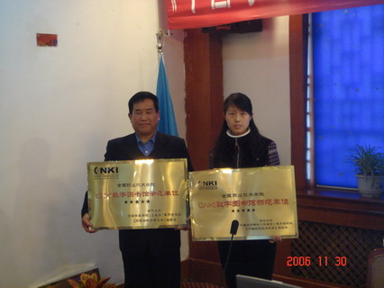 会议由清华同方陕西、甘肃地区经理介绍了《中国学术期刊网络出版总库》通过国家新闻出版总署、教育部、科技部、文化部、信息产业部、国家发改委鉴定验收的情况,并对2007年总库8个分库的文献进行了检索演示。会上,清华同方授予我院图书馆、西安市图书馆等5个单位为中国知识基础设施工程全国职业技术学院CNKI数字图书馆示范单位。杨昌俊馆长代表我院图书馆接受了赠牌并在大会上讲了话。