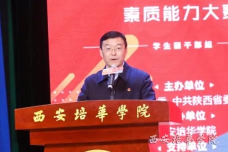西安培华学院理事长姜波在致辞中向长期以来支持培华发展的共青团陕西省委及各位领导表示衷心的感谢!向前来参赛的各高校代表表示热烈的欢迎!他说学校高度重视共青团工作,大力推进团学改革,特别是在共青团陕西省委的指导和关怀下,校级团干部素质能力大赛已经举办了三届。通过大赛,以赛促学、以赛促练,培养了一大批优秀的基层团干部。大赛对全面加强我校团干部队伍建设,激活基层团组织活力起到了很大的促进意义。也祝愿各兄弟高校共青团工作更上一个新台阶,为陕西共青团事业做出应有的贡献!