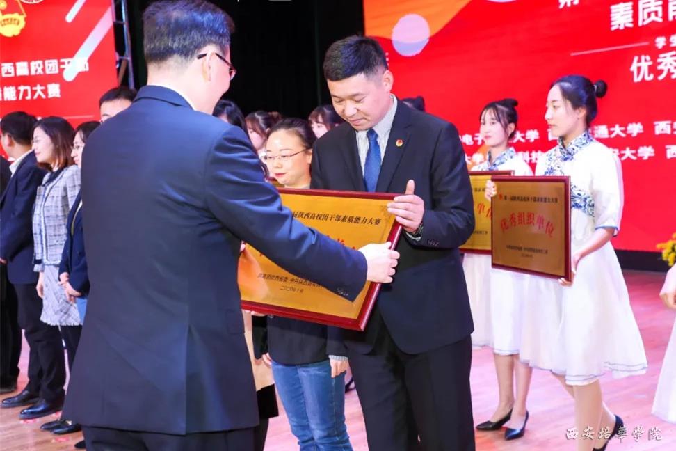 团陕西省委书记段小龙,陕西省青联副主席、西安培华学院理事长姜波为优秀组织单位颁奖