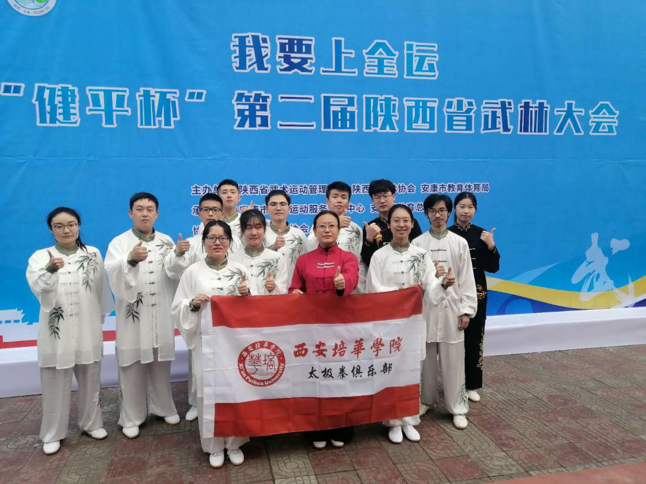 该项赛事每两年举行一次,本次比赛共有来自全省各市(区、县)43支代表队的566名武林精英齐聚安康,摩拳擦掌,决战金州。由太极拳俱乐部主任黄慧老师带领12名队员组成的西安培华学院太极拳代表队参加了本次比赛。正所谓“有志者,事竟成”,在此次比赛中我校太极拳代表队不畏强手,勇于拼搏,最终获得7金8银8铜的好成绩,并获得体育道德风尚奖。