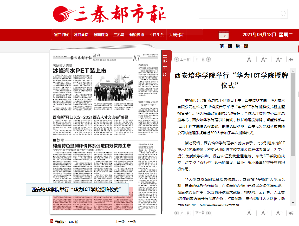 据悉,西安培华学院华为ICT学院的成立,标志着学校在产教融合、校企合作培养高质量通信与信息技术领域技能型人才的道路上又迈出了坚实的一步,共同探索培养ICT行业优秀人才的创新之路,努力打造更高水平的华为ICT人才培养基地。