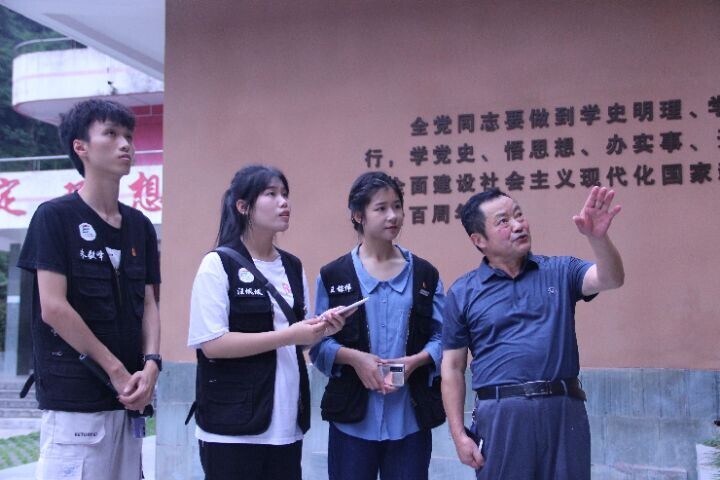 图为2021年7月6日,团队成员跋山涉水来到安康紫阳革命遗址芭蕉口,聆听方万华老先生讲解,通过短视频,宣传片等新媒体技术手段,宣传推广革命老区。中国青年通讯员 陈天航