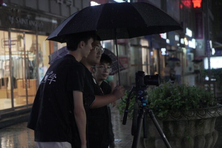 图为2021年7月8日晚,在夜雨中,团队成员记录着紫阳人民的幸福生活的千姿百态,每一字、每一帧都是成员用辛勤的汗水付出来的,汗水与雨水交织着,正是三下乡的意义所在。 中国青年通讯员 陈天航 摄