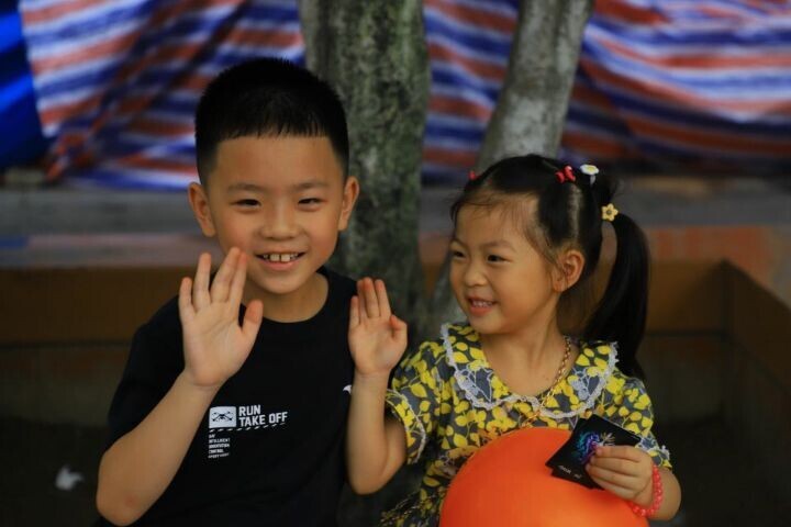 图为2021年7月4日,孩子们幸福快乐地与团队成员们打招呼说再见,希望明年可以再来和他们一起玩耍。 中国青年通讯员 吴翰林 摄