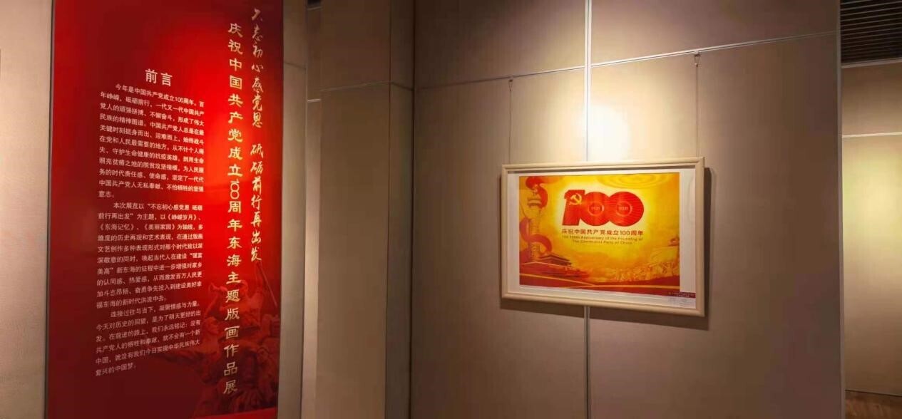 图为东海少儿版画中心为庆祝中国共产党建党一百周年创作的版画作品。 中国青年网通讯员 焦思源 摄