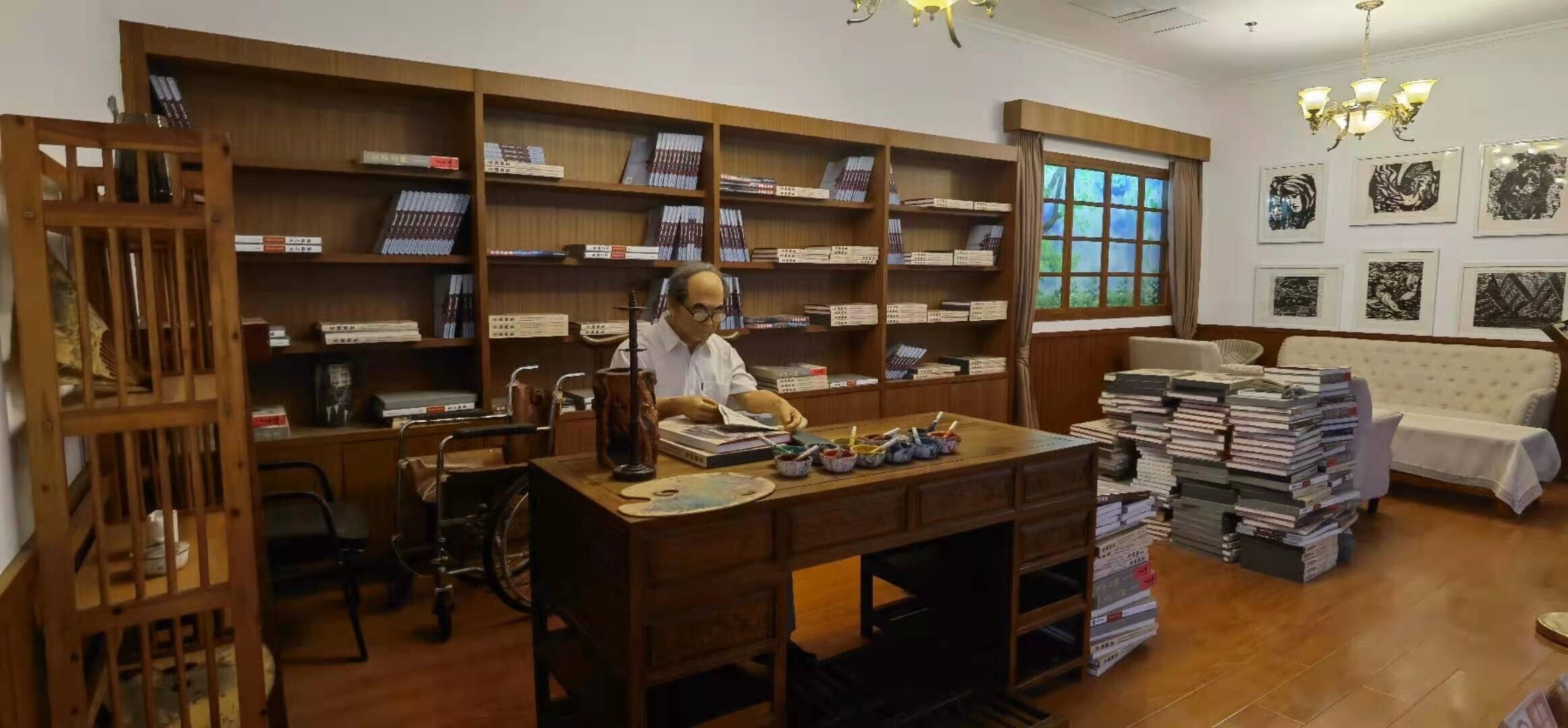 图为版画艺术家彦涵仿真塑像。 中国青年网通讯员 王高涵 摄