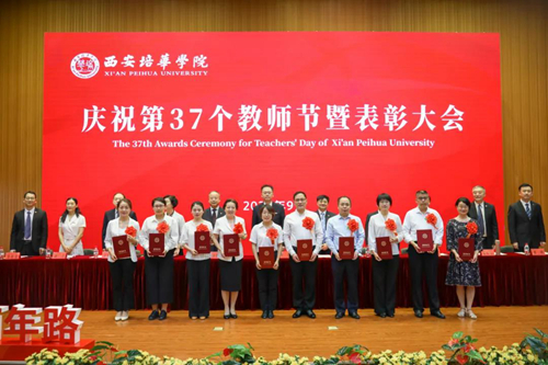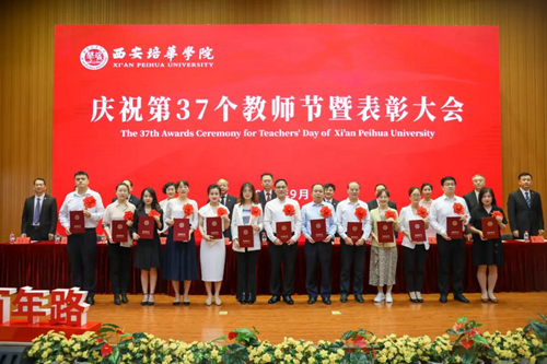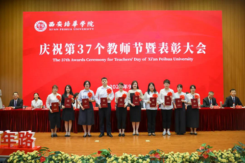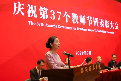 9月9日下午,西安培华学院在维之图书馆报告厅举行2021年庆祝教师节暨表彰大会。全体校级领导,各院(部)、中心负责人、教师代表、辅导员代表近300人参加了会议。