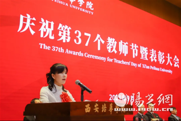 党委副书记、副校长姚文静副教授宣读《西安培华学院关于表彰2020-2021学年优秀教师、优秀辅导员、先进工作者的通报》