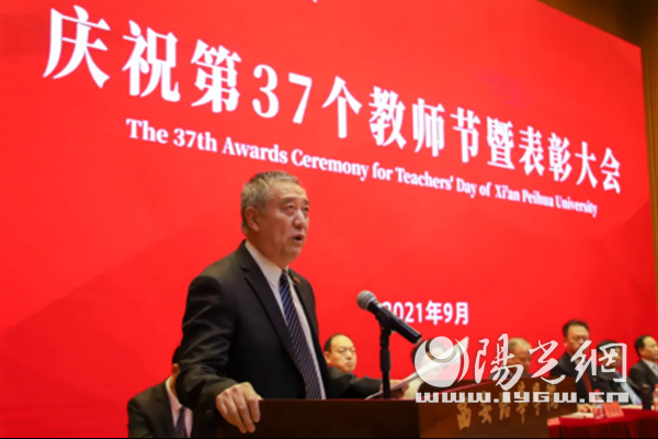 9月9日下午,西安培华学院在维之图书馆报告厅举行2021年庆祝教师节暨表彰大会。全体校级领导,各院(部)、中心负责人、教师代表、辅导员代表近300人参加了会议。