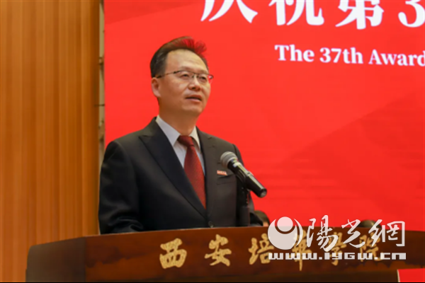 党委副书记、工会主席徐国富教授宣读《西安培华学院工会关于表彰2021年光荣从教满20年人员的决定》《西安培华学院关于第二届最美教师和最美职员评选结果的通报》
