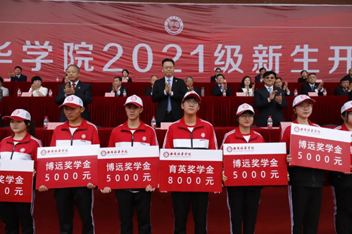 姜波理事长深情讲述了培华从抗战到新中国成立再到改革开放新时期的发展历史,表示培华自1928年就吹响了“产教融合”的号角,长期致力于培养经济独立、人格独立、思想独立和行动自由的爱国青年。在建党百年、培华建校93年之际,更要牢记历史、不忘先辈,将几代培华人的梦想和精神传承下去。同时,他对新生提出几点希望:要不忘初心、懂得感恩;要拥有健康的体魄、良好心态,珍惜时间、充实生命;要持续深造、夯实基础;要独立思考、敢于挑战,成为教育事业的参与者和推动者。