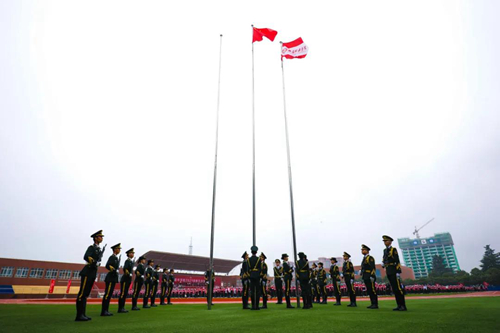 升国旗,奏唱国歌 升校旗,奏唱校歌