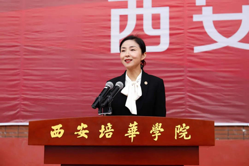 高安文女士回顾了与培华的相遇相知,并代表前30年历届毕业生向为培华发展付出心血的全体教师表达了衷心感谢。她讲到,培华“校誉至上、质量第一、自强不息、开拓前进”校训早已成为了自己职业生涯努力打拼的信念,也将性格中的乐观而刚毅、勇敢而坚强的培华精神,传递给身边所有的人。她表示,培华学院作为一所常新的大学,新于勇担时代使命、新于办一流学院、育一流人才、做一流贡献,并祝语在座新生勇担时代使命,成长为一流人才,做一流贡献,将培华精神以及发自内心的情愫传承下去。