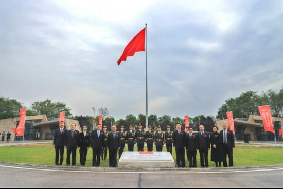 与会领导为西安培华学院爱国主义教育广场和红旗揭幕