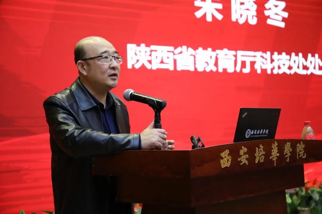 图/陕西省教育厅科技处处长朱晓冬讲话